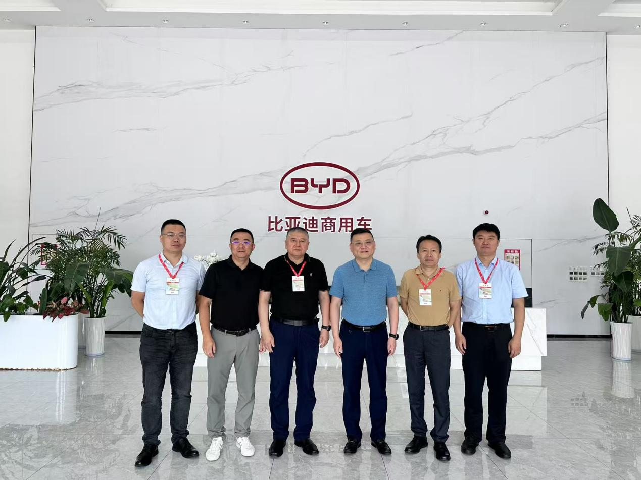 2025年7月3日,中国物流采购联合会副会长杨国栋带团队拜访深圳比亚迪商用车,比亚迪商用车事业部总经理田春龙携团队接待,深圳市新能源车辆应用推广中心常务副理事长徐川、深圳市公路货运与物流行业协会物流企业综合评估办公室主任李健陪同拜访。